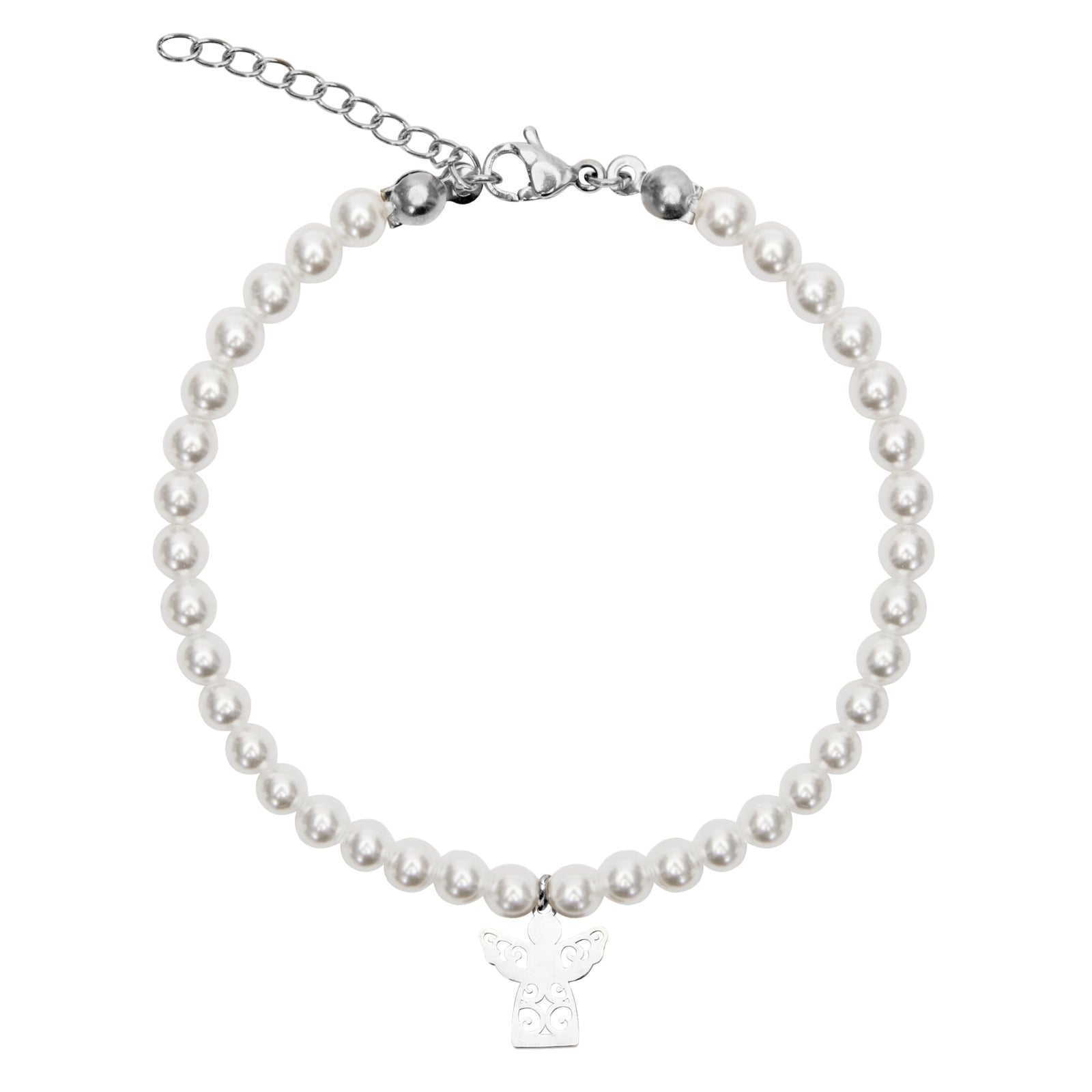 Bransoletka HCA Crystals by HCA z perłami ze stali nierdzewnej i aniołem