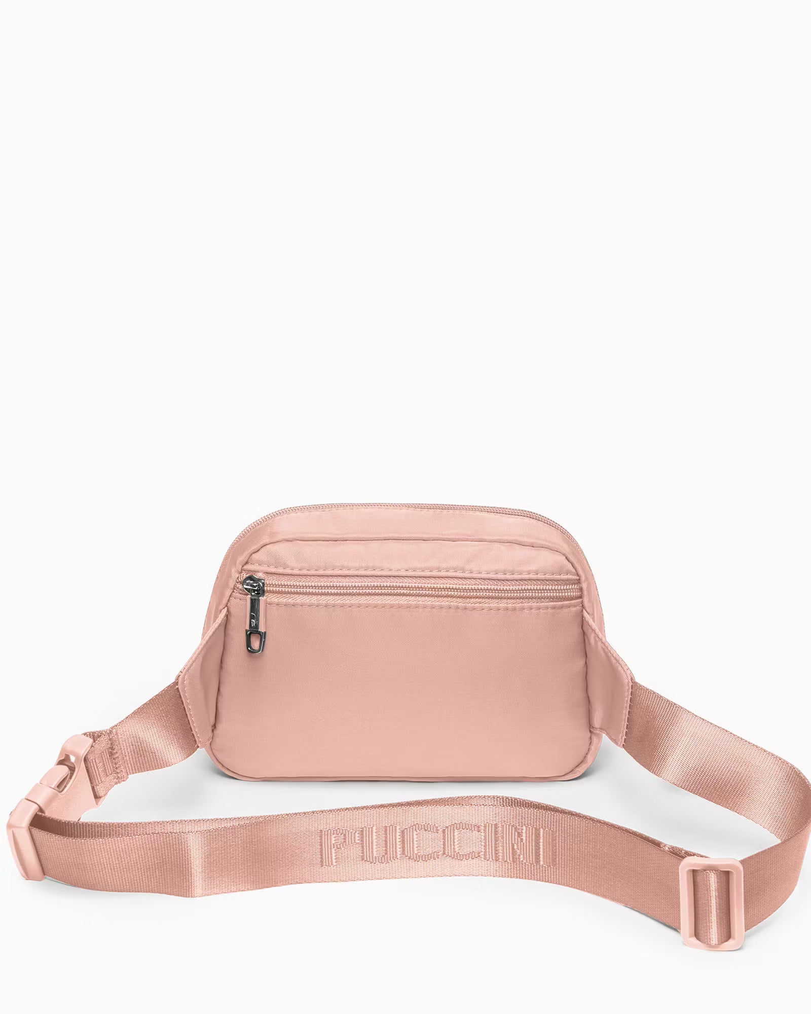 Nerka ma regulowany, materiałowy pasek z nadrukowanym logo PUCCINI. Można ją nosić na dwa sposoby: na biodrach lub na ukos.