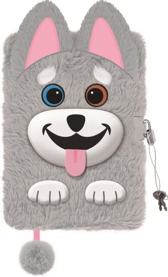 Dagboek met hangslot 3D grijs, Husky hond A5, 96 pagina's