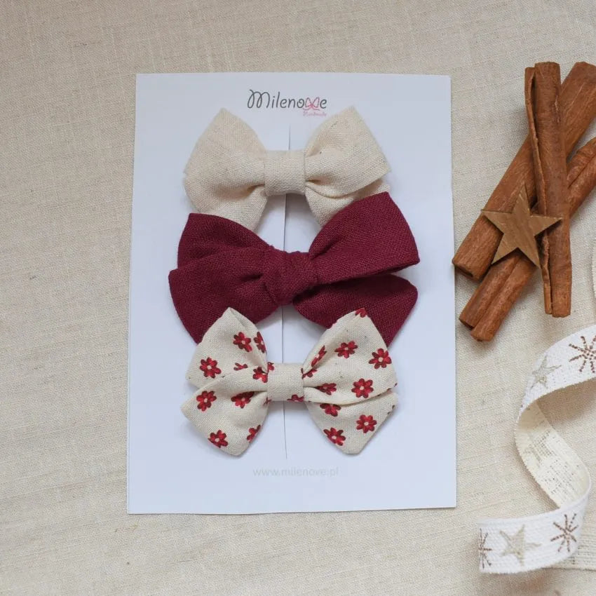 Burgundy Flowers Bow Set – delicate haaraccessoires voor kinderen en vrouwen.