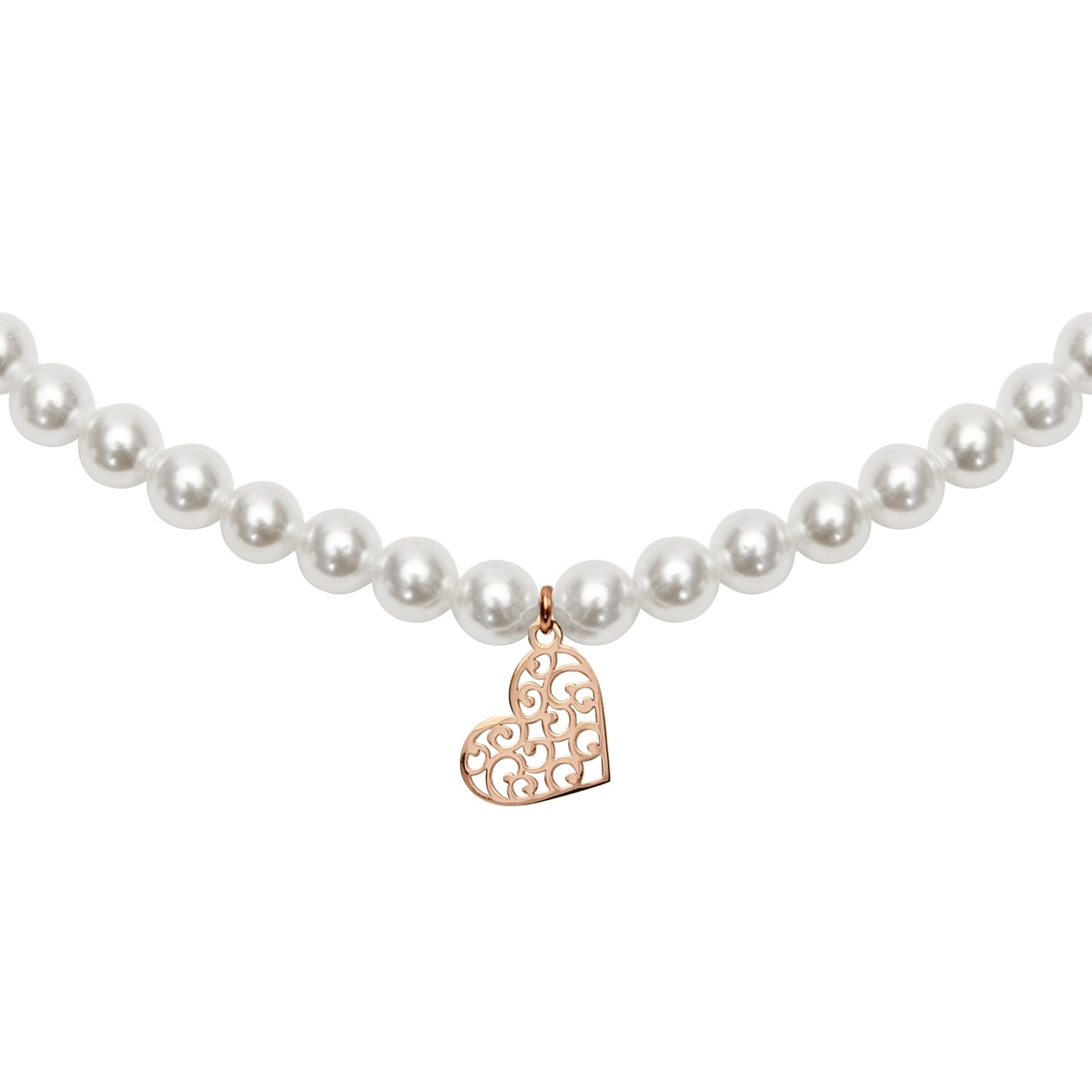 Prachtige armband met parels en het symbool van de hart. De armband heeft een verlengkettinkje van ca. 3 cm en is daardoor variabel in lengte.