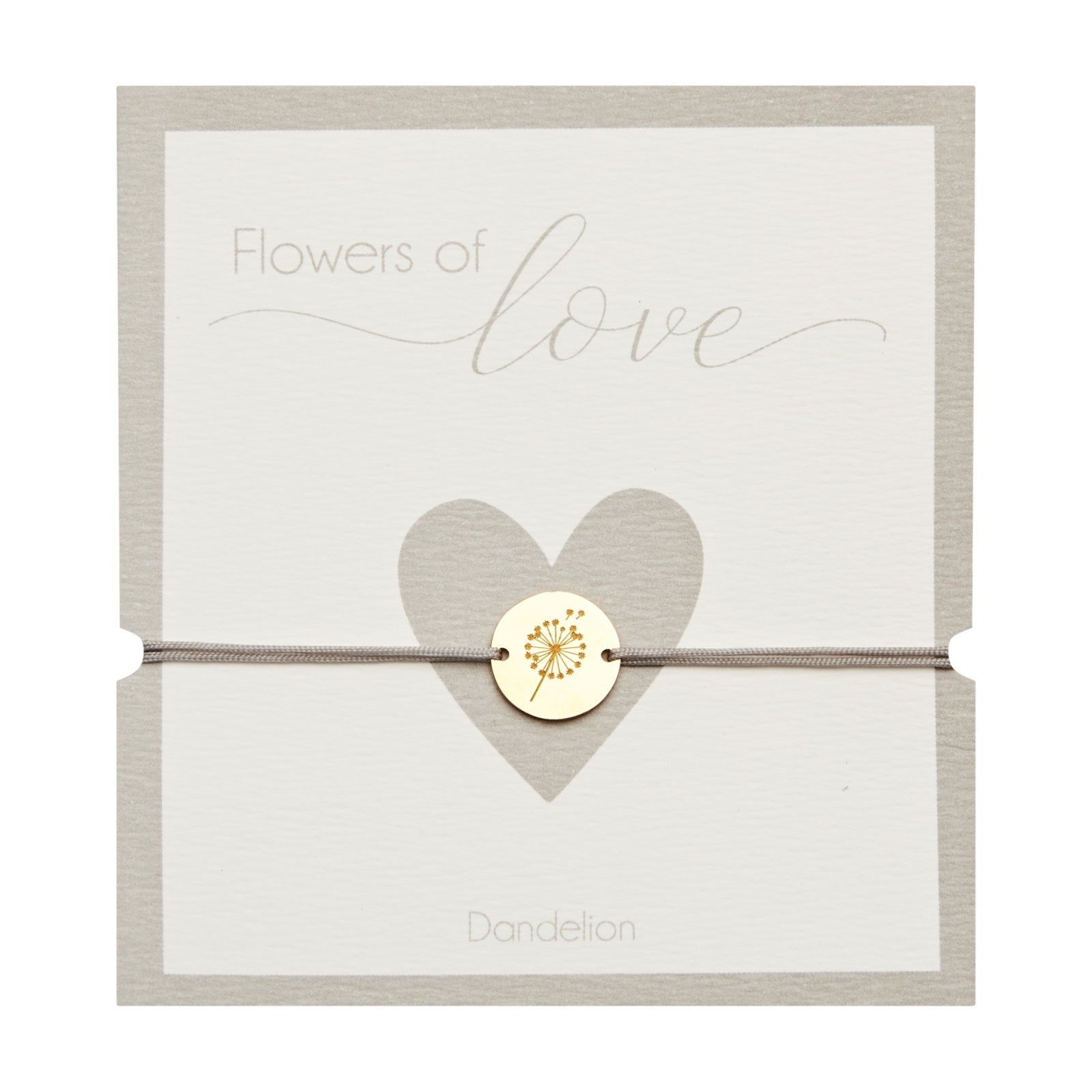 Smaakvolle, eenvoudige textielarmband met paardenbloemmotief. De armband kan in maat worden versteld door aan de uiteinden te trekken.