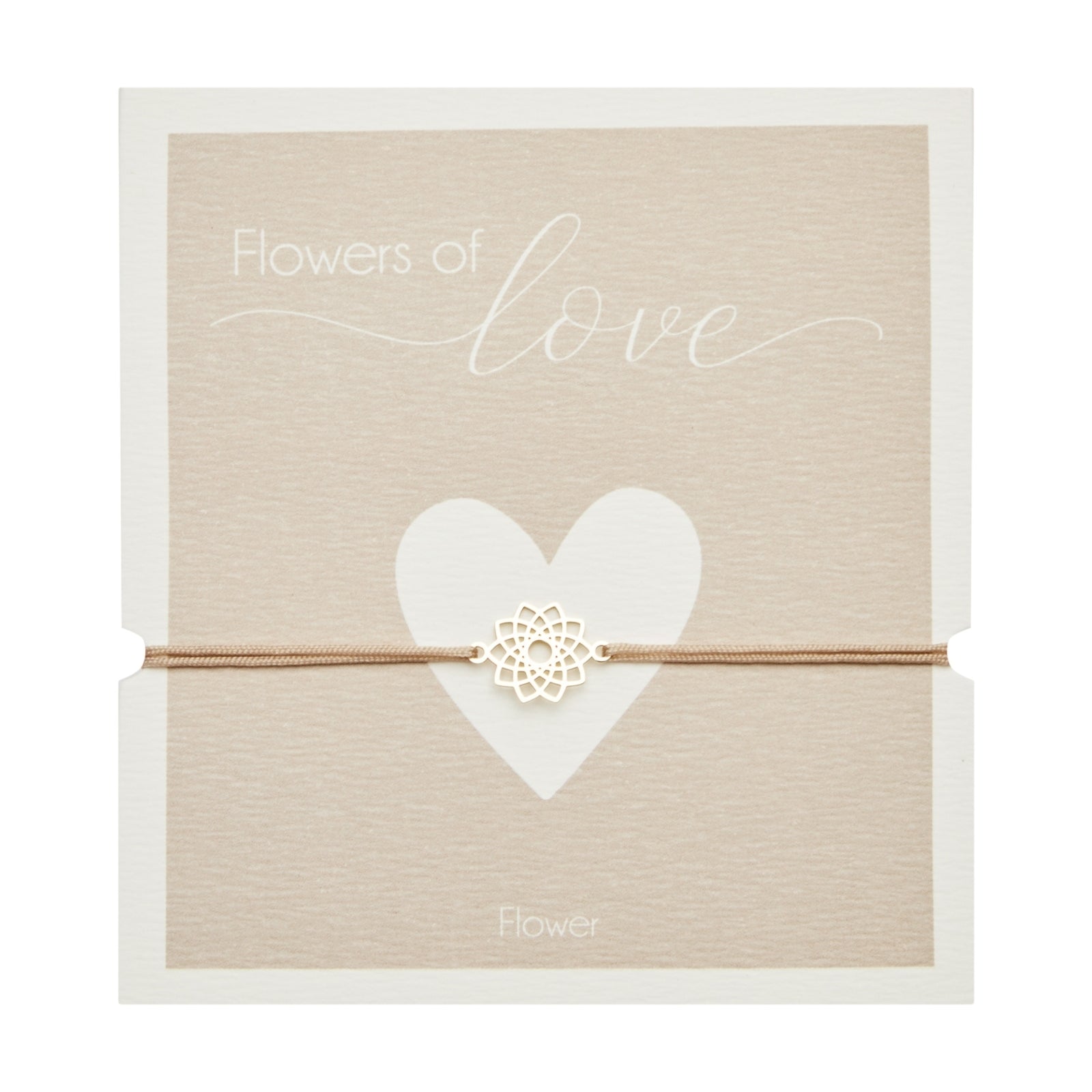 Smaakvolle, eenvoudige textielarmband met bloemensymbool. De armband kan in maat worden versteld door aan de uiteinden te trekken.