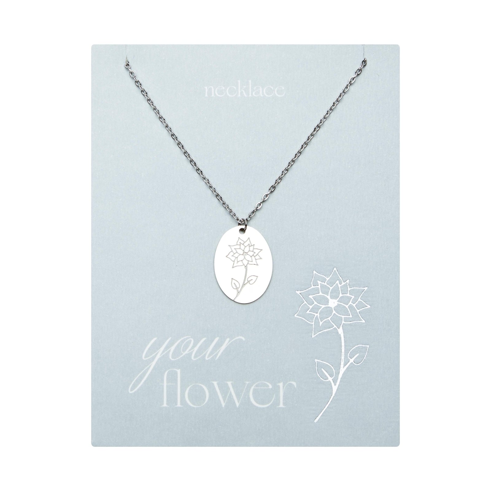 De collectie Your Flower bestaat uit kettingen en armbanden, elk gegraveerd met een geboortebloem. Alle sieraden zijn gemaakt van roestvrij staal en 6 geboortebloemen zijn ook verguld. Op de achterkant van elke ketting staat de naam van de bloem in het Engels gegraveerd. Er zijn armbanden die bij de kettingen passen.