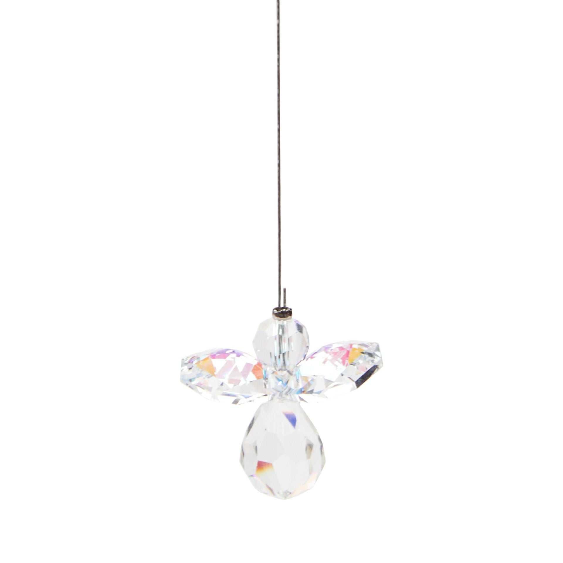 Betoverend engeltje gemaakt van transparante, fonkelende, geslepen glazen steentjes. De beschermengel wordt gebruikt als geluksbrenger, talisman of krachtbrenger - een kleine metgezel met veel betekenis!