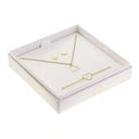 Elegante cadeauset bestaande uit oorbellen, armband en ketting. Prachtig verpakt in een crèmekleurige geschenkdoos met glanzend, opvallend reliëf in zilver.