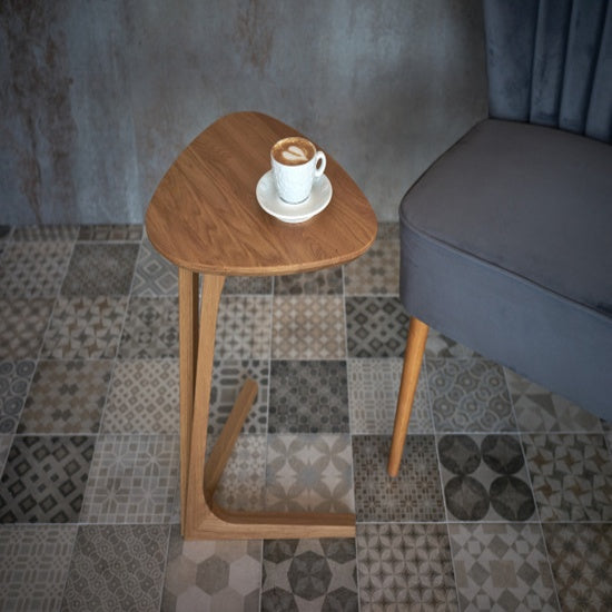 Van je favoriete fauteuil voor een boek dat je leest, naar een bank voor een filmsnack. De TRIANGLE bijzettafel is een handige hulp waar je ook iets wilt neerzetten. Hij is gemaakt van massief eikenhout, waardoor je de natuur letterlijk binnen handbereik hebt.