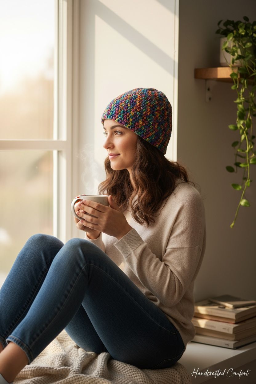 Gemêleerde multicolor muts, 100% handgemaakt in Europa.