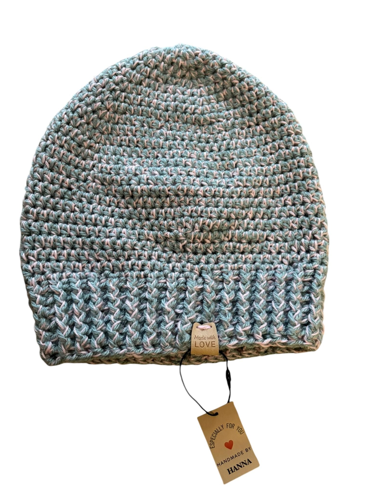 Gemêleerde lichtblauwe muts, 100% handgemaakt in Europa.