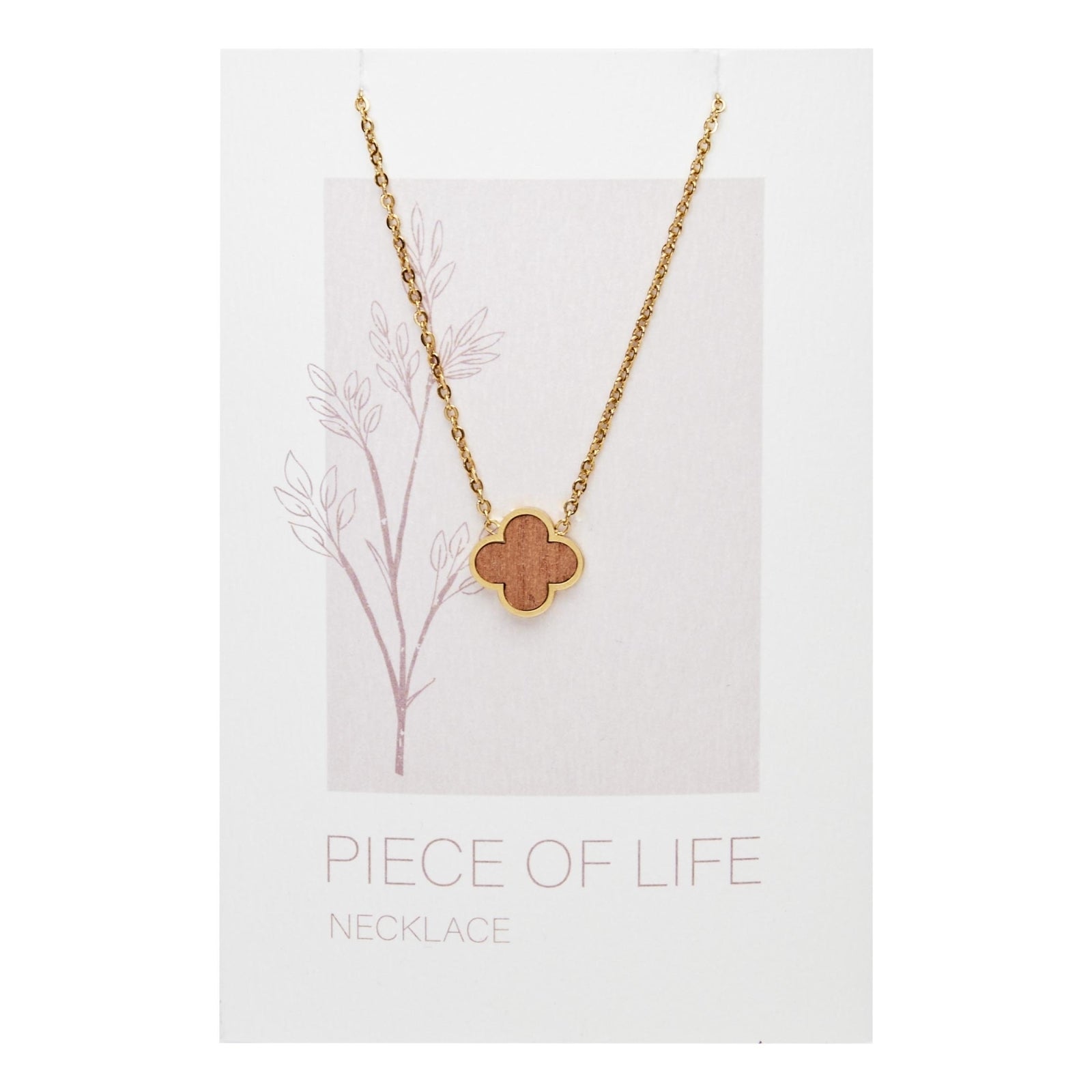 Voor de kettingen in de serie Piece of Life combineert HCA roestvrij staal, gedeeltelijk verguld of roségoud verguld, met houten elementen. Er is keuze uit 3 houten elementen: Hart, klaverblad en cirkel. Deze zijn elk gezet in roestvrij staal. De armbanden zijn in lengte verstelbaar. De producten worden cadeau gedaan op een hoogwaardig kaartje.