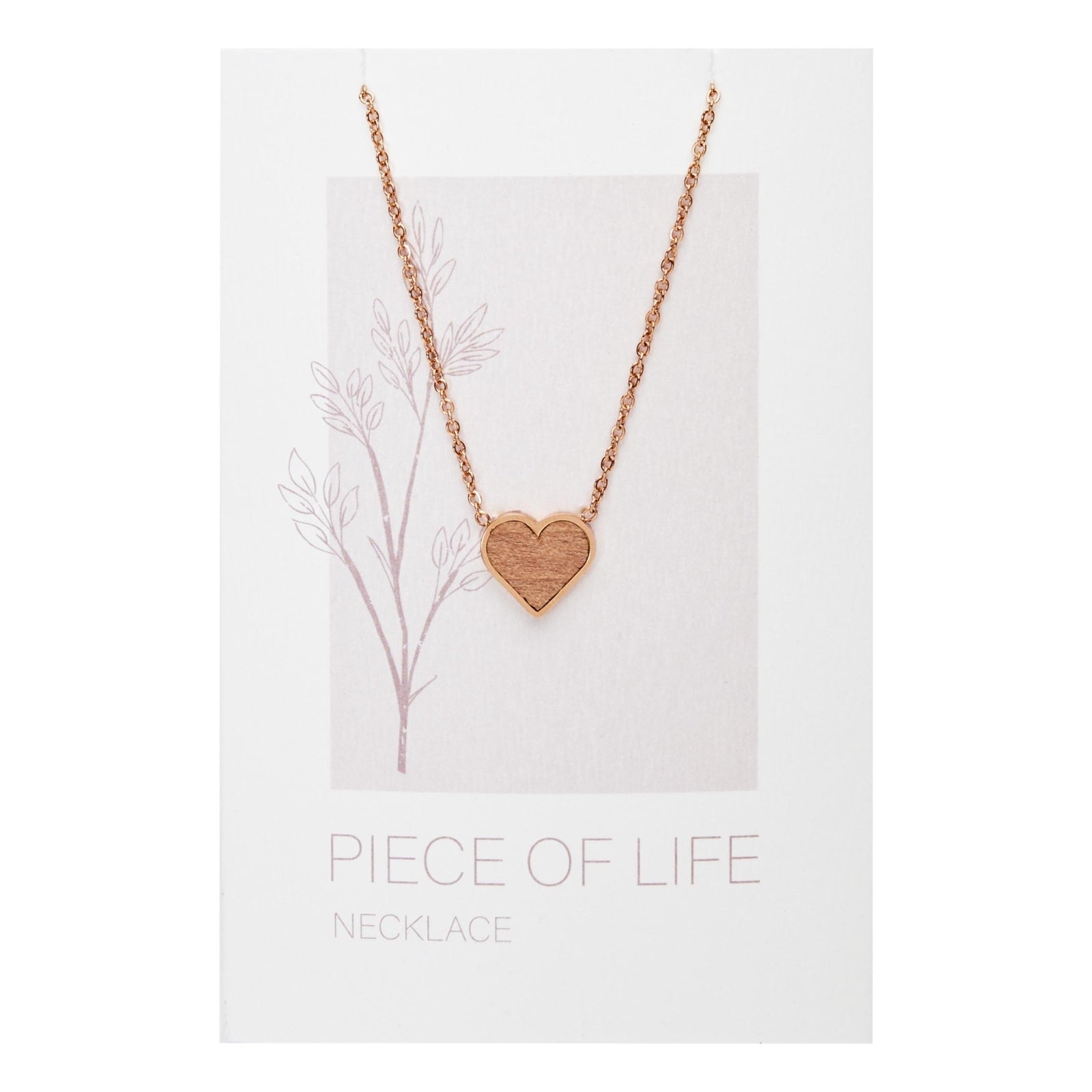 Voor de kettingen in de serie Piece of Life combineert HCA roestvrij staal, gedeeltelijk verguld of roségoud verguld, met houten elementen. Er is keuze uit 3 houten elementen: Hart, klaverblad en cirkel. Deze zijn elk gezet in roestvrij staal. De armbanden zijn in lengte verstelbaar. De producten worden cadeau gedaan op een hoogwaardig kaartje.