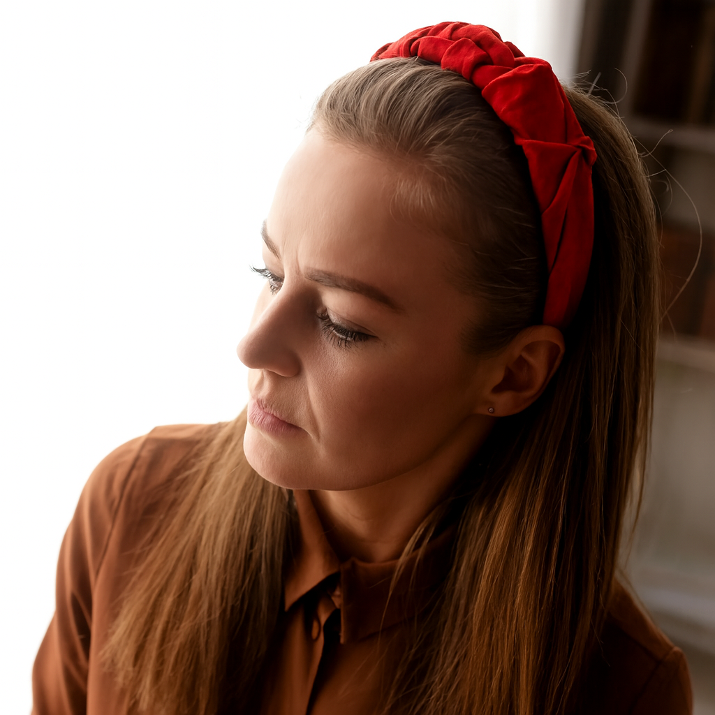 Rode Linnen Geruffelde Hoofdband HANDGEMAAKT