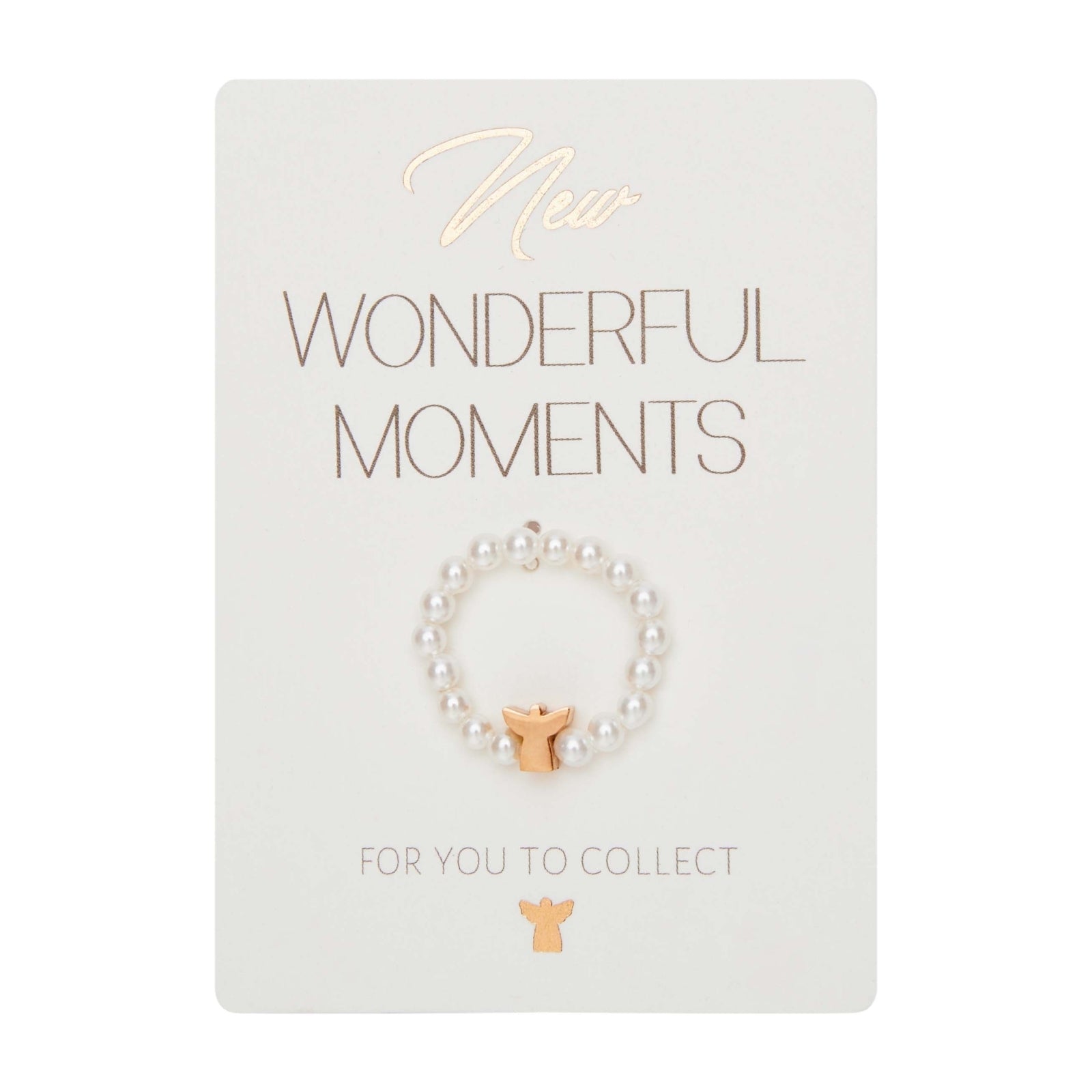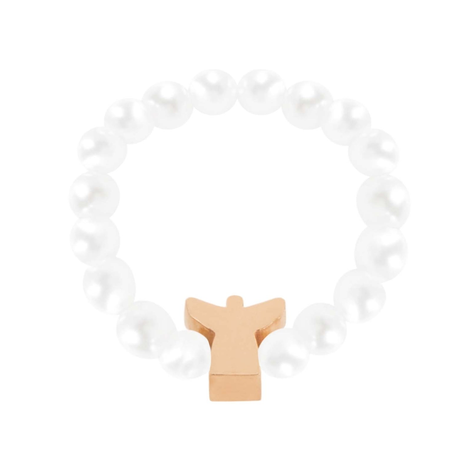 Prachtige parelring met het symbool van de beschermengel, gemaakt van hoogwaardige parelmoeren kralen.