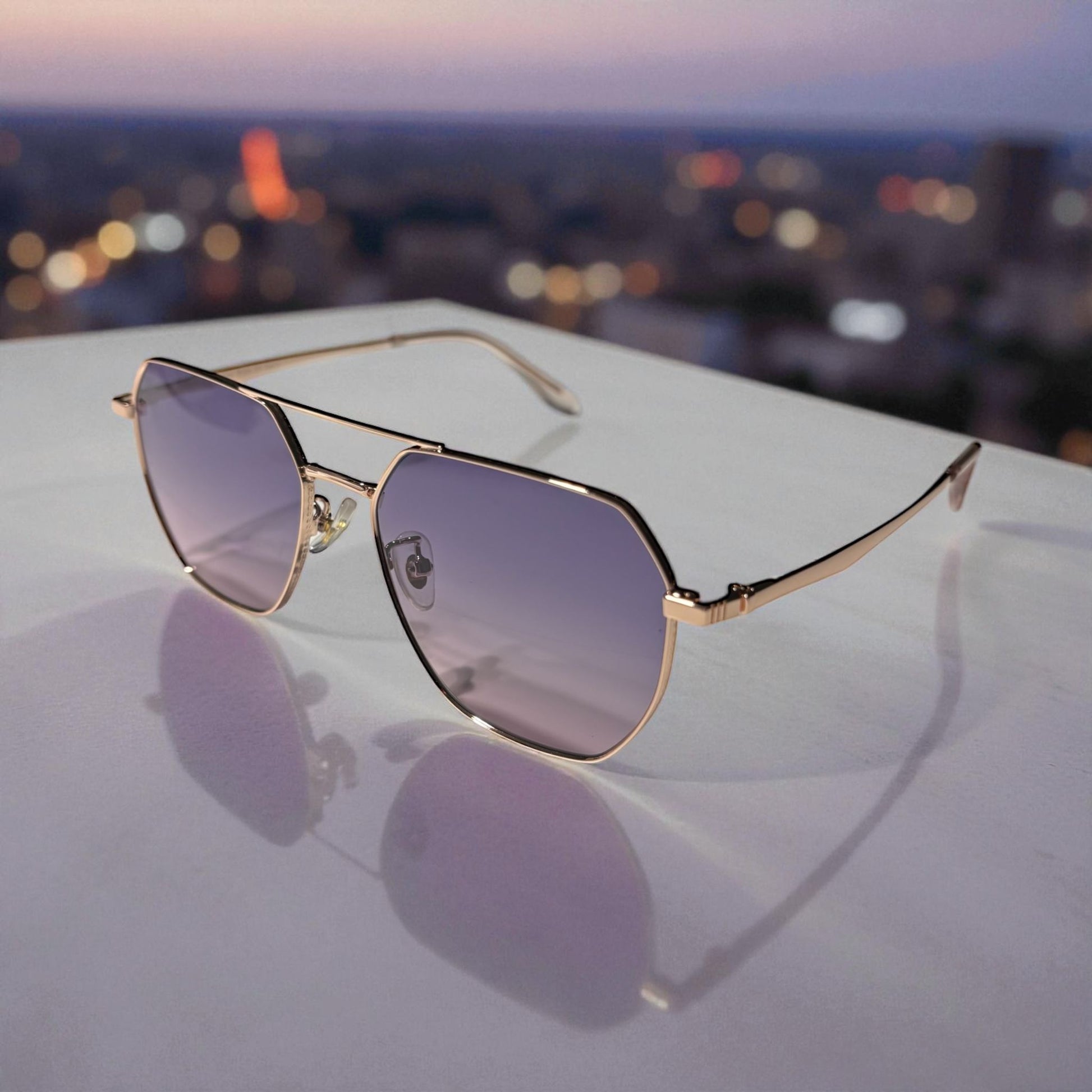 Zonnebril-Enzo Colini-Dames-Goud en Paars-Etui en doekje GRATIS