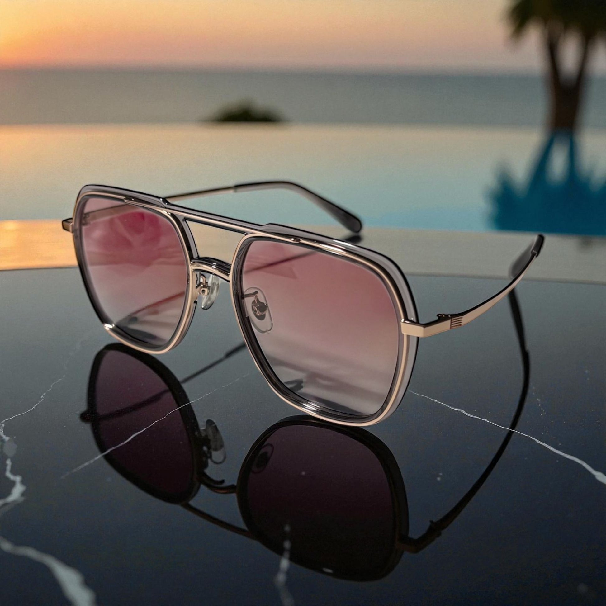 Zonnebril-Enzo Colini-Dames-Goud en roze-Etui en doekje GRATIS