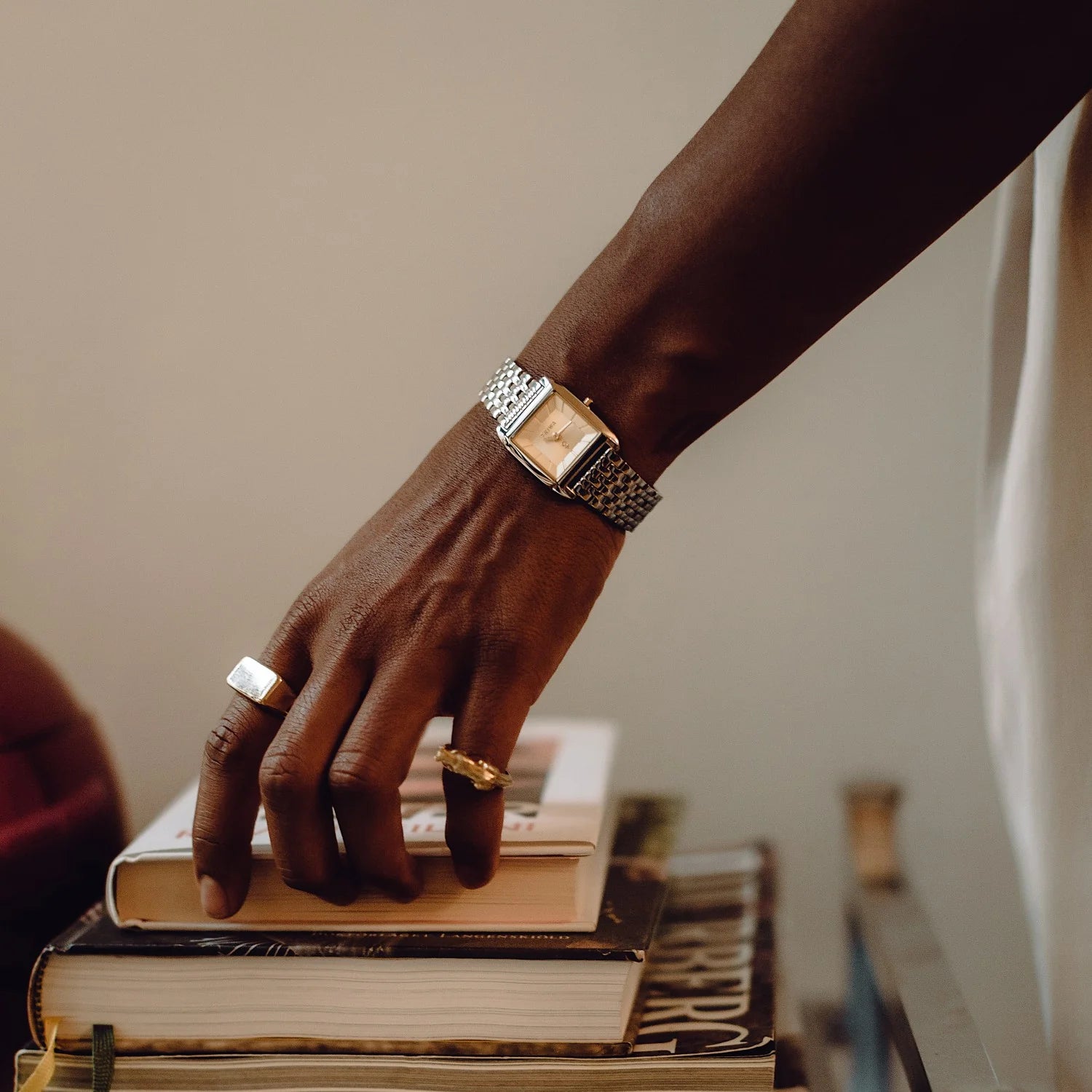 Time for Power Gold is niet zomaar een horloge, het is een gedurfd, alledaags eerbetoon aan de onstuitbare kracht van vrouwen. Klassiek ontmoet modern in een gedurfde nieuwe vorm. Met een gestroomlijnd rechthoekig silhouet, een stralende sunray wijzerplaat en empowerende details zoals de ingegraveerde "YOU GOT THIS" mantra en het iconische vrouwelijke symbool, is het een draagbare herinnering om ruimte in te nemen en je eigen stem te laten horen. Dit roestvrijstalen horloge, gemaakt door vrouwen voor vrouwen, verandert stille elegantie in een krachtig statement. En het heeft precies de juiste hoeveelheid pit. Power dressing? Dit is kracht tikken.