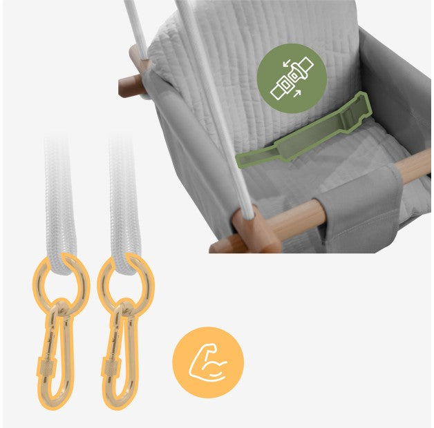 Installeer onze schommel waar je maar wilt in huis – in de kinderkamer, de woonkamer of op het terras – en zorg ervoor dat je kind elke dag zorgeloos kan spelen.